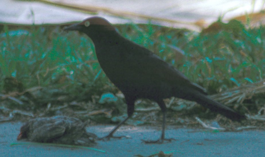 blackbird standing on smaller brown bird, which proved to