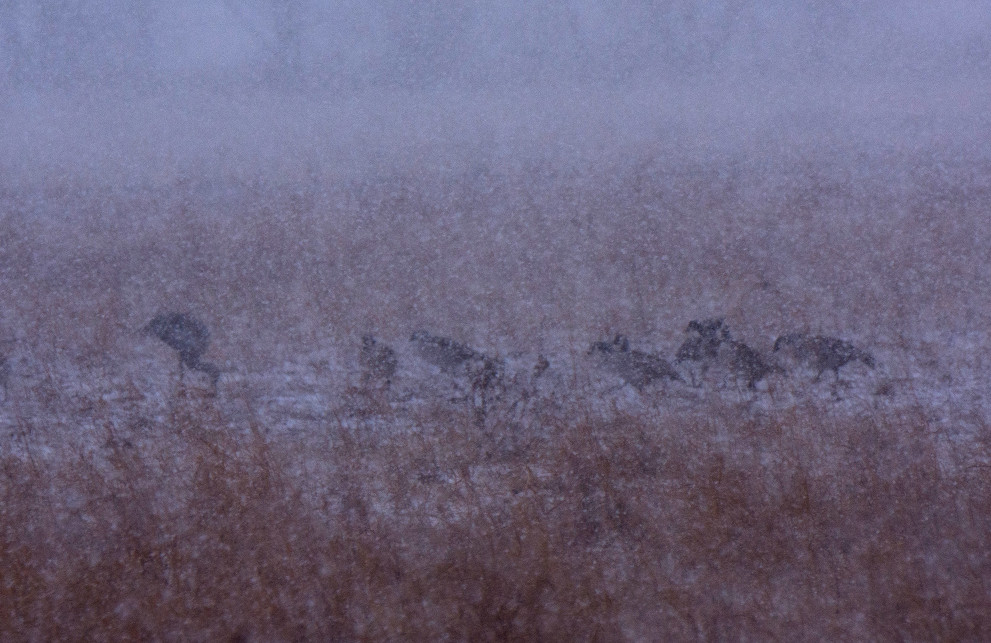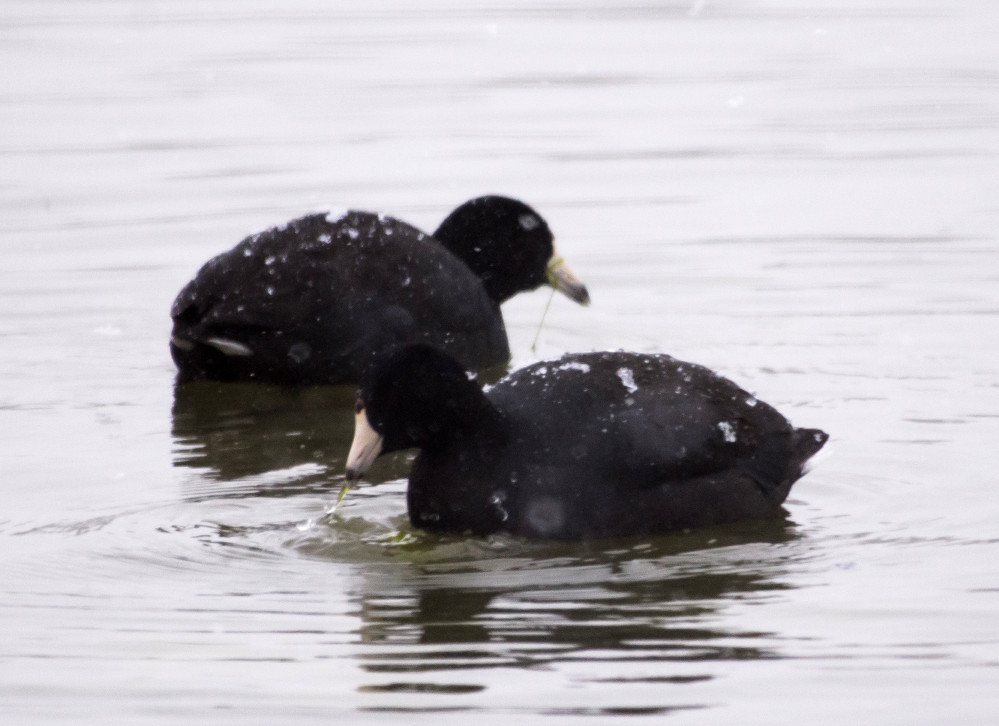 Snowing all day, 16" total. These two birds were storm