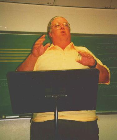 This shot was taken in summer 1998 by Valerie Kimble for a story that appeared in the Socorro El Defensor-Chieftain to promote the summer choral group that I lead. The picture is posed; generally I conduct from the piano.